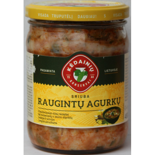Ingredienser:  potatis 34%, inlagd gurka 18% (gurka, vatten, salt, dill, torkad pepparrot, torkade vitlöksklyftor), grönsaker i proportioner 16% (morötter, lök), pärlgryn (från korn), vatten, tomatpuré, rapsolja, salt, vetemjöl, kryddor.