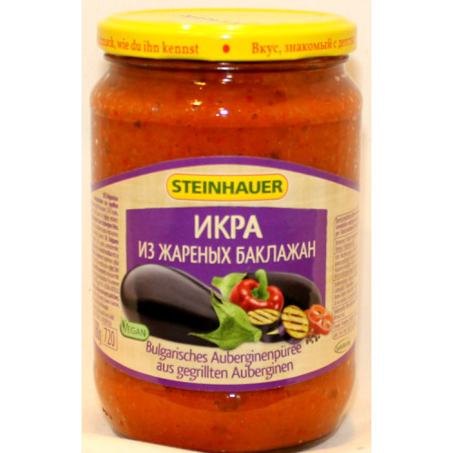 Ingredienser: Aubergine 72,4%, paprika, solrosolja, tomatpasta, socker, salt, vitlök, stabilisator glukono-delta-lakton. Kan innehålla spår av selleri.