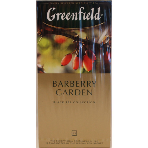 Svart te "Greenfield Barberry Garden" med smak av barbaris, 25 tepåsar