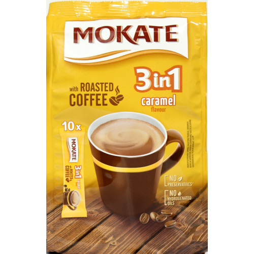 Ingredienser: socker, glukossirap, kokosolja, kaffe (snabbkaffe 8,95%, finmalet kaffe 0,05%, karamellsocker 0,8%, mjölkprotein, surhetsreglerande medel; natriumcitrat, kaliumfosfater, emulgeringsmedel; mono-diglycerider av fettsyror). Kan innehålla spår av soja, gluten.