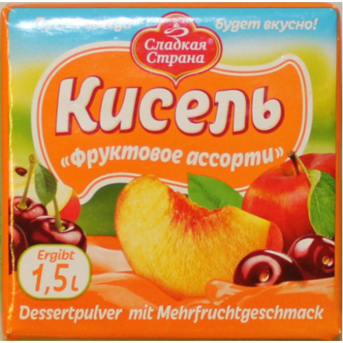 Ingredienser: Socker, potatisstärkelse, äpple, körsbär, persikakoncentrat, arom, färgämne: E124, E122, E102, E160a. Tartrazin, Azorubin, Nykockin kan ha en negativ effekt på barns beteende och koncentration.