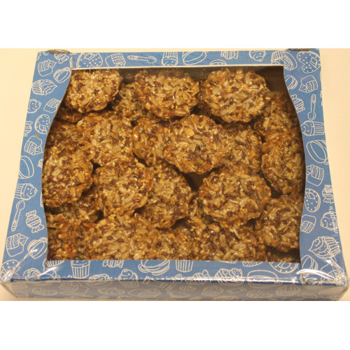 Näringsvärde per 100g: Energi: 2454 kJ / 589 kcal Fett: 40 g varav mättat fett: 5,2 g Kolhydrat: 43,6 g varav sockerarter: 19,7 g Protein: 13,7 g Salt: 0 g