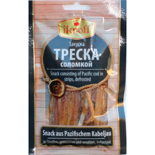 Ingredienser: Torsk (Gadus macrocephalus) 92%, salt, socker, fuktgivande sorbitol, smakförstärkare E621