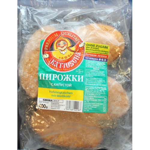 Tillagningsmetod: 1. I mikrovågsugn: Lägg i 4 stycken piroger och värm i 3-4 min. Med en mindre mängd piroger eller om de är tinade kan tillagningstiden minskas i motsvarande grad. 2. I stekpanna: Tina pirogerna i rumstemperatur och värm sedan med en liten mängd av vegetabilisk olja på medelvärme, vänd några gånger.