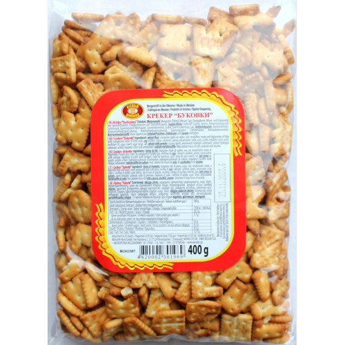 Ingredienser: vetemjöl, margarin (palmolja, vatten, salt, emulgeringsmedel mono- och diglycerider av fettsyror, sojalecitin, färgkarotenoider, arom, konserveringsmedel sorbinsyra, surhetsreglerande medel mjölksyra), solrosolja, socker, inert sockersirap, salt, helmjölkspulver, bakpulver ammonium vätekarbonat, natriumvätekarbonat, surhetsreglerande medel citronsyra, antioxidationsmedel natriummetabisulfit. Kan innehålla spår av nötter, jordnötter och sesam.